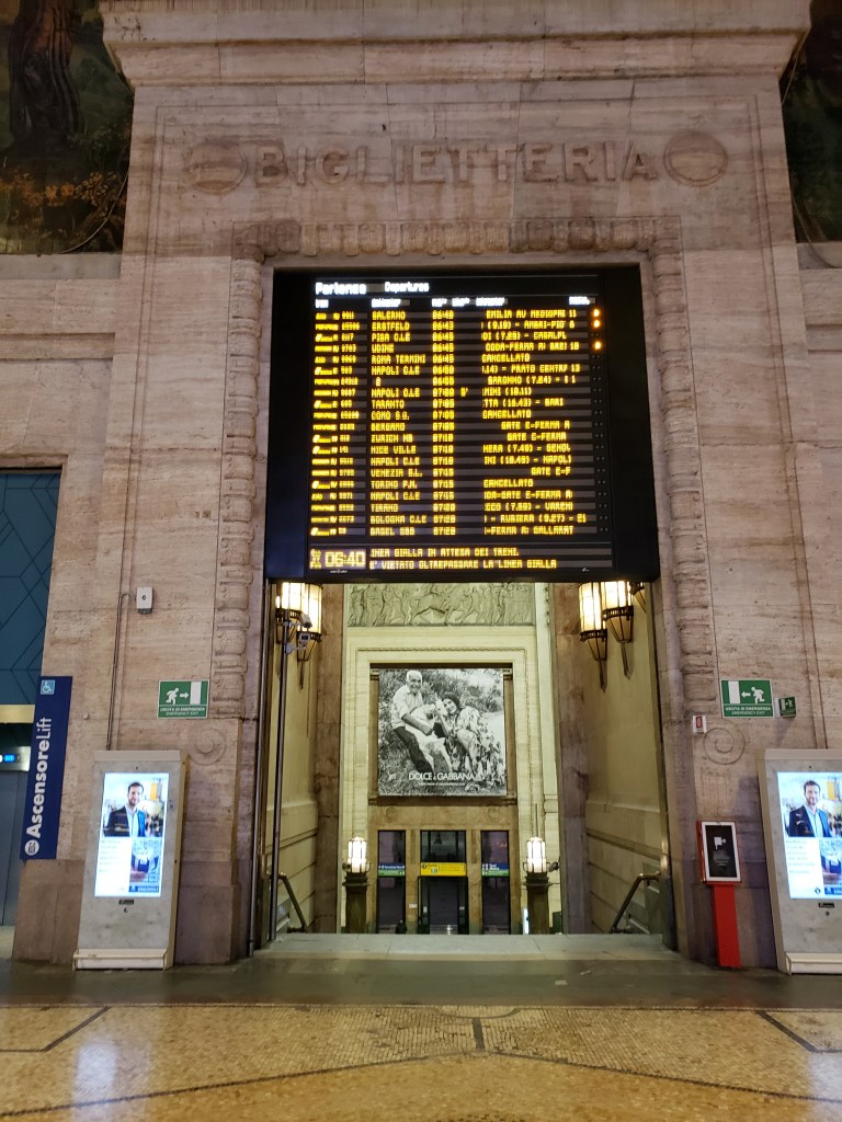 Navigating the train stations of the large cities such as Rome, Milan, Naples, and others is overwhelming at first glance but the systems and processes are very organized and efficient when you understand them. Once you understand the departure and arrival boards you quickly realize it is very easy to get oriented.