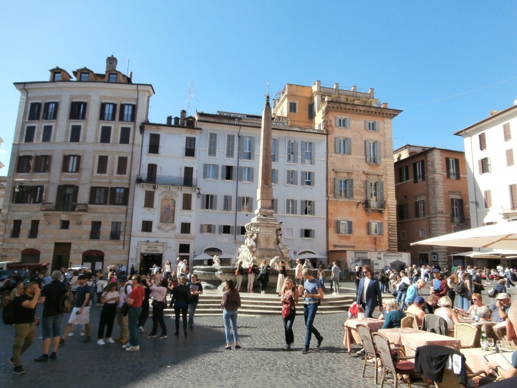 People sit at the many cafes that line 3 sides of the square and drink prosecco in a perfect setting while toasting to being at the Pantheon in Rome. They have arrived, and they feel it. There must be 10 or 12 cafes in Piazza della Rotonda and their outside seating is always full.