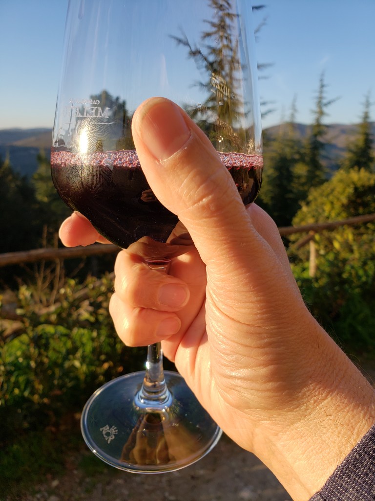 After receiving some background on the wine I have chosen I take my glass and stroll outside to gaze across the valley. It is quiet and peaceful. The occasional songs from birds and the wind through the trees is all I hear. I drink my wine and when ready I head back inside to choose another. The host has prepared a small board of aperitive and I snack on the assorted treats while I sip another glass. I’m in no particular hurry. Why would I want to be anyplace else?