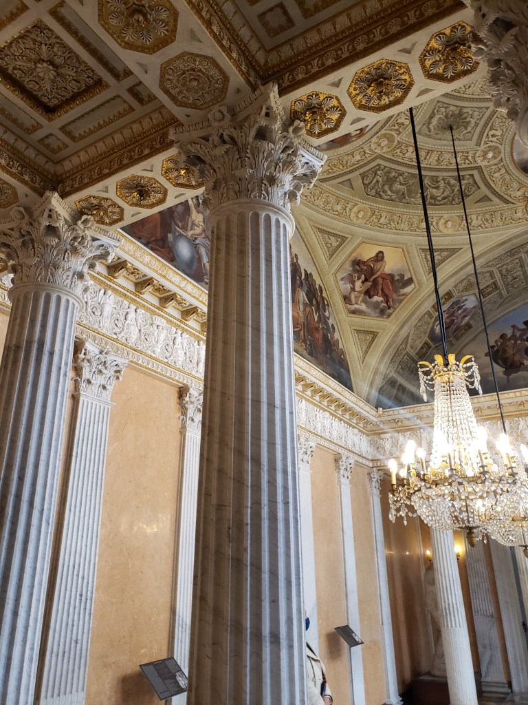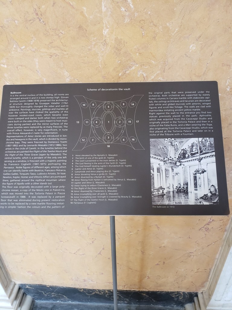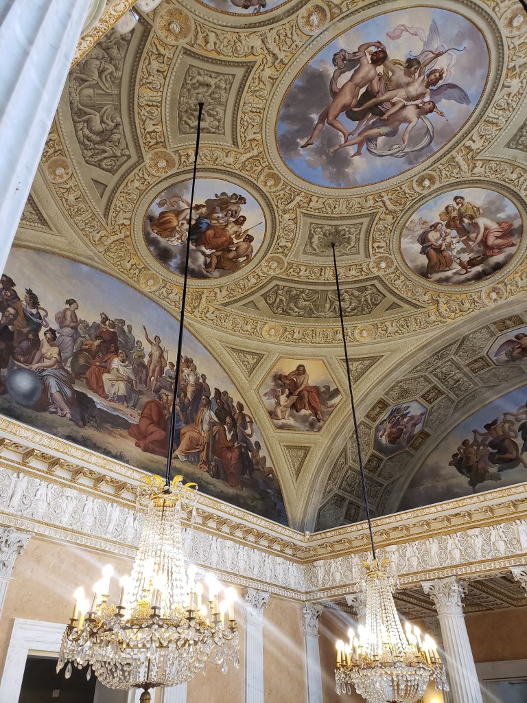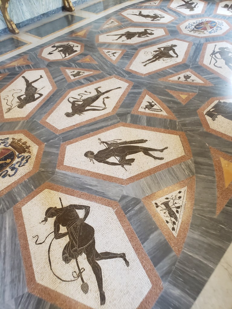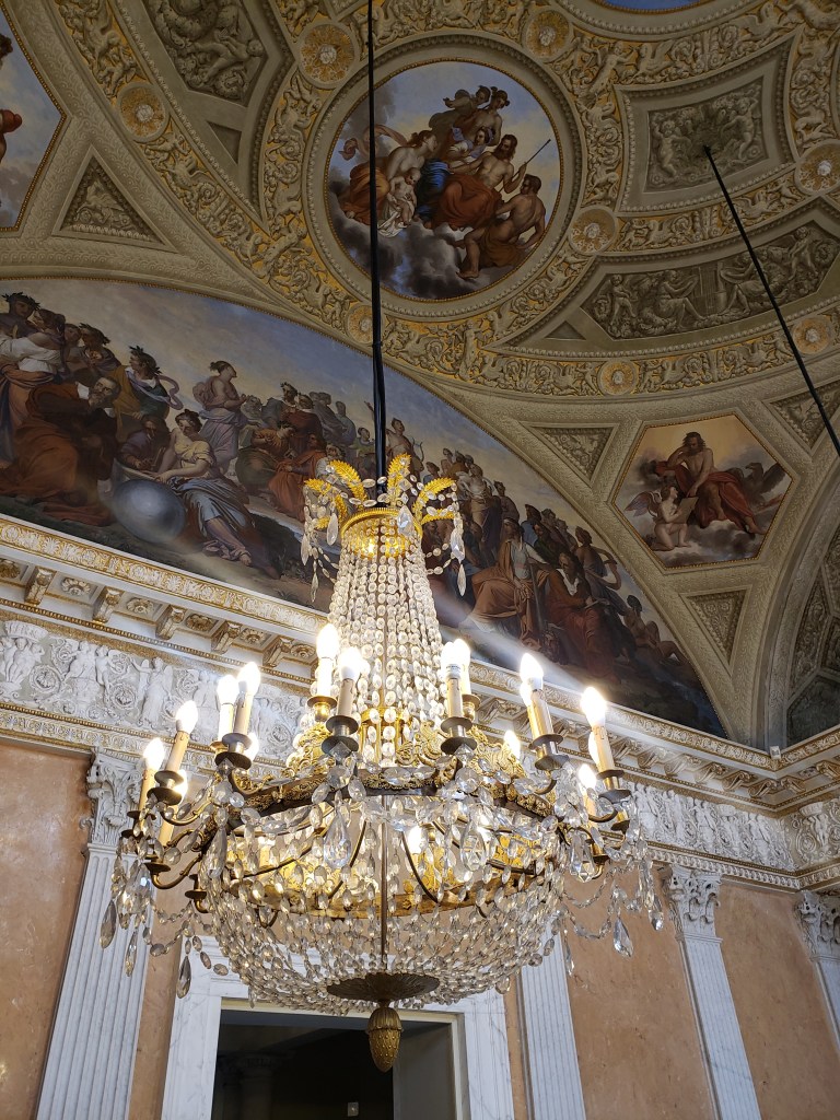 The villa is ornately decorated. The walls, ceilings, and floors are all covered in an extravagant manner that make it the reason to visit. Beautiful mosaics cover the floors. Frescoes fill the ceilings and walls. Large intricate chandeliers hang in nearly every room. Marble carvings line the great halls. The villa is exceptionally restored and it shines.