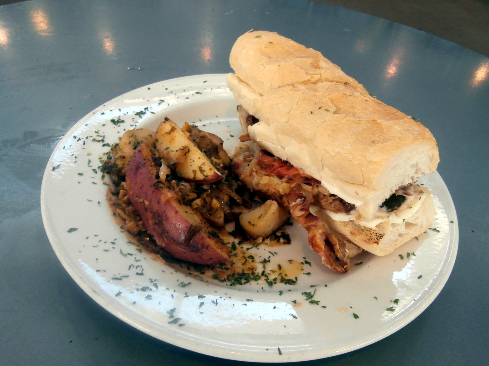 Po Boy Sandwich – New Orleans New Orleans is home of the famous ‘Po Boy’ sandwich. Enjoying a crab po boy here at the French Market.